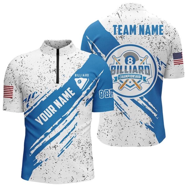 8 Ball Pool Blue White Grunge US Flag Billiard Jerseys, Personalized Billiard Team Jersey Shirt – Excoolent Sports jerseys are the epitome of personalized style in athletics. They are crafted to deliver both performance and flair, seamlessly blending comfort with a distinct appearance. Constructed from premium fabrics, they offer unrestricted movement and breathability during every game. With their unique designs, often showcasing bold patterns and customizable options, sports jerseys add a touch of individuality to your sporting attire. Whether you’re a casual player or a seasoned pro, a sports jersey is a statement piece that reflects your love for the sport. Stand out on the field or court and embrace both comfort and personal style with this essential athletic apparel.