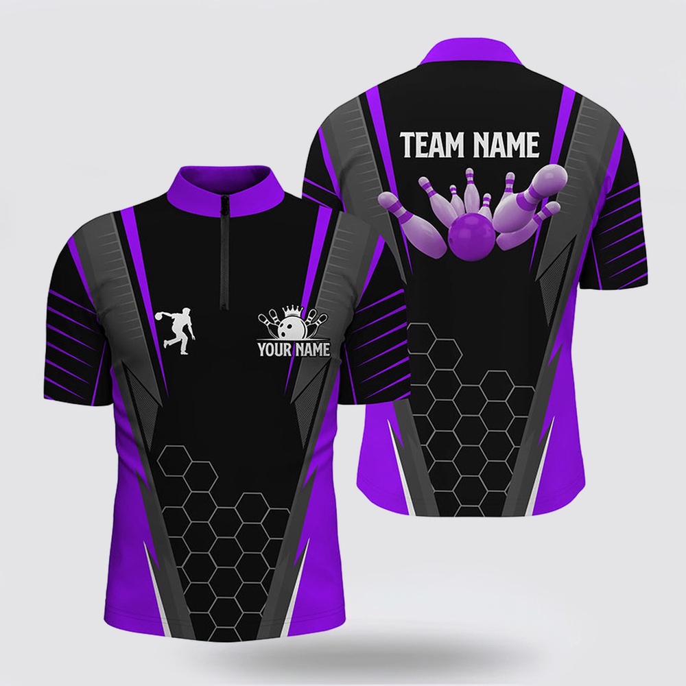 Bowling Jersey, Black Men Bowling Shirt Bowling Jersey Custom Name Mens Bowlers Jersey, Team Bowling Outfits Purple The Bowling Jersey is the pinnacle of personalized style on the lanes. Crafted for both performance and flair, it combines comfort with a distinctive look. Made from premium fabrics, it offers ease of movement and breathability during every roll. The unique design, often featuring bold patterns and customizable options, adds a touch of individuality to your game. Whether you’re a casual bowler or a seasoned pro, the Bowling Jersey is a statement piece that showcases your love for the sport. Stand out on the lanes and embrace both comfort and personality with this essential bowling apparel.