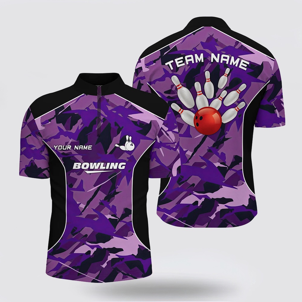 Bowling Jersey, Men Bowling Bowling Jersey Shirts Custom Bowling Ball And Pins Purple Camo Bowling Team Jersey For Men The Bowling Jersey is the pinnacle of personalized style on the lanes. Crafted for both performance and flair, it combines comfort with a distinctive look. Made from premium fabrics, it offers ease of movement and breathability during every roll. The unique design, often featuring bold patterns and customizable options, adds a touch of individuality to your game. Whether you’re a casual bowler or a seasoned pro, the Bowling Jersey is a statement piece that showcases your love for the sport. Stand out on the lanes and embrace both comfort and personality with this essential bowling apparel.