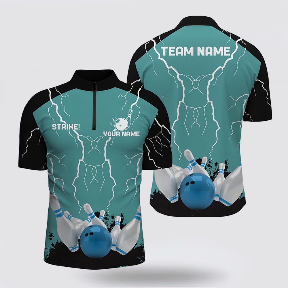 Bowling Jersey, Men Bowling Bowling Jersey Shirts Custom Bowling Strike Lightning Storm Team League Jersey Turquoise The Bowling Jersey is the pinnacle of personalized style on the lanes. Crafted for both performance and flair, it combines comfort with a distinctive look. Made from premium fabrics, it offers ease of movement and breathability during every roll. The unique design, often featuring bold patterns and customizable options, adds a touch of individuality to your game. Whether you’re a casual bowler or a seasoned pro, the Bowling Jersey is a statement piece that showcases your love for the sport. Stand out on the lanes and embrace both comfort and personality with this essential bowling apparel.