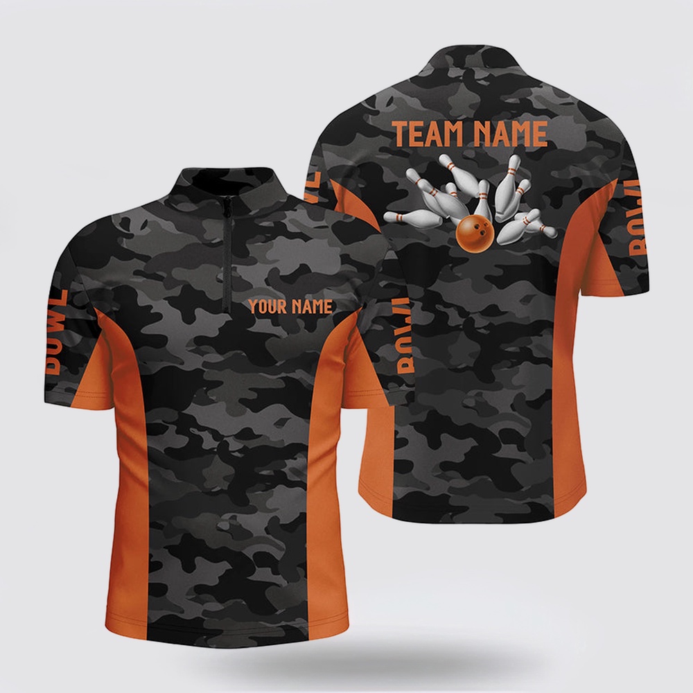 Bowling Jersey, Men Bowling Bowling Jersey Shirts Custom Gray Camo Bowling Team Jersey, Bowling Team League Shirt Orange The Bowling Jersey is the pinnacle of personalized style on the lanes. Crafted for both performance and flair, it combines comfort with a distinctive look. Made from premium fabrics, it offers ease of movement and breathability during every roll. The unique design, often featuring bold patterns and customizable options, adds a touch of individuality to your game. Whether you’re a casual bowler or a seasoned pro, the Bowling Jersey is a statement piece that showcases your love for the sport. Stand out on the lanes and embrace both comfort and personality with this essential bowling apparel.