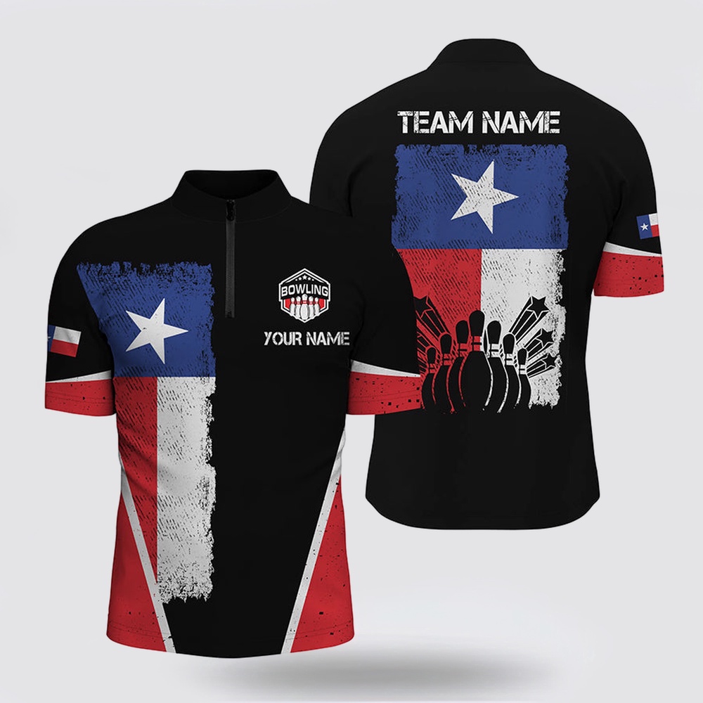Bowling Jersey, Men Bowling Bowling Jersey Shirts Custom Name Texas Flag Vintage Black Bowling Team Bowlers Jerseys