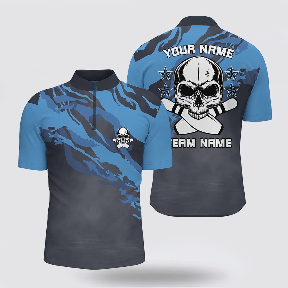 Bowling Jersey, Personalized Blue Camo Skull Bowling Bowling Jersey Shirt For Men Custom Team Name Men Bowler Jersey The Bowling Jersey is the pinnacle of personalized style on the lanes. Crafted for both performance and flair, it combines comfort with a distinctive look. Made from premium fabrics, it offers ease of movement and breathability during every roll. The unique design, often featuring bold patterns and customizable options, adds a touch of individuality to your game. Whether you’re a casual bowler or a seasoned pro, the Bowling Jersey is a statement piece that showcases your love for the sport. Stand out on the lanes and embrace both comfort and personality with this essential bowling apparel.