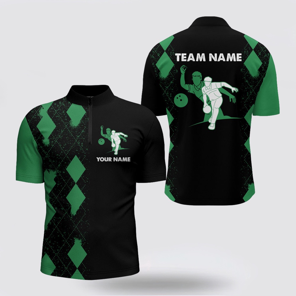 Bowling Jersey, Personalized Bowling Shirt For Men Bowling Jersey, Custom Name Men Green And Black Team Bowling Shirt The Bowling Jersey is the pinnacle of personalized style on the lanes. Crafted for both performance and flair, it combines comfort with a distinctive look. Made from premium fabrics, it offers ease of movement and breathability during every roll. The unique design, often featuring bold patterns and customizable options, adds a touch of individuality to your game. Whether you’re a casual bowler or a seasoned pro, the Bowling Jersey is a statement piece that showcases your love for the sport. Stand out on the lanes and embrace both comfort and personality with this essential bowling apparel.