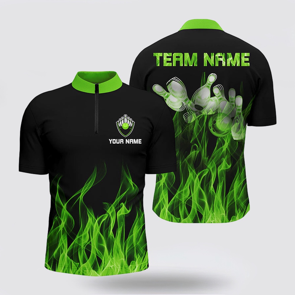 Bowling Jersey, Personalized Men Bowling Jersey Bowling Shirt Green Flame Bowling Ball & Pins Bowling Jerseys For Bowler The Bowling Jersey is the pinnacle of personalized style on the lanes. Crafted for both performance and flair, it combines comfort with a distinctive look. Made from premium fabrics, it offers ease of movement and breathability during every roll. The unique design, often featuring bold patterns and customizable options, adds a touch of individuality to your game. Whether you’re a casual bowler or a seasoned pro, the Bowling Jersey is a statement piece that showcases your love for the sport. Stand out on the lanes and embrace both comfort and personality with this essential bowling apparel.