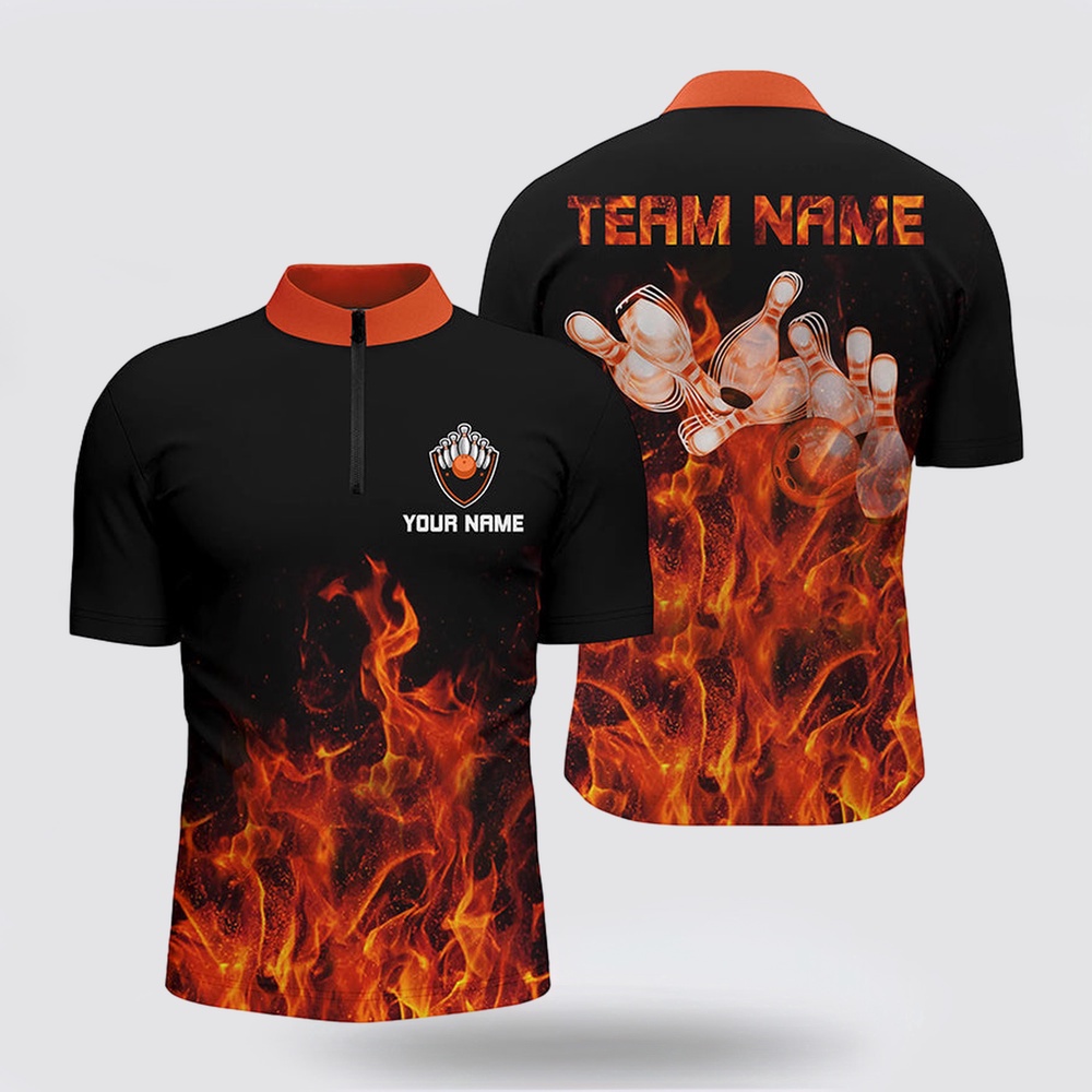 Bowling Jersey, Personalized Men Bowling Jersey Bowling Shirt Orange Flame Bowling Ball & Pins Bowling Jerseys For Bowler The Bowling Jersey is the pinnacle of personalized style on the lanes. Crafted for both performance and flair, it combines comfort with a distinctive look. Made from premium fabrics, it offers ease of movement and breathability during every roll. The unique design, often featuring bold patterns and customizable options, adds a touch of individuality to your game. Whether you’re a casual bowler or a seasoned pro, the Bowling Jersey is a statement piece that showcases your love for the sport. Stand out on the lanes and embrace both comfort and personality with this essential bowling apparel.