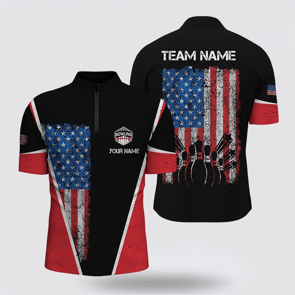 Bowling Jersey, Personalized Retro Bowling Bowling Jersey Shirt For Men Vintage American Flag Patriotic Bowler Jerseys The Bowling Jersey is the pinnacle of personalized style on the lanes. Crafted for both performance and flair, it combines comfort with a distinctive look. Made from premium fabrics, it offers ease of movement and breathability during every roll. The unique design, often featuring bold patterns and customizable options, adds a touch of individuality to your game. Whether you’re a casual bowler or a seasoned pro, the Bowling Jersey is a statement piece that showcases your love for the sport. Stand out on the lanes and embrace both comfort and personality with this essential bowling apparel.
