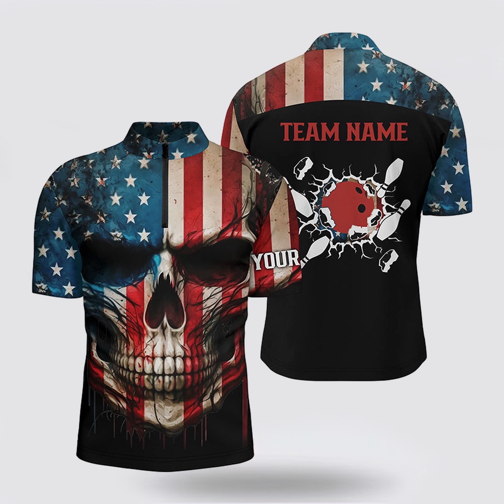 Bowling Jersey, Personalized Skull Bowling Shirt For Men Custom Team Name American Flag Bowler Jersey Bowling Jersey The Bowling Jersey is the pinnacle of personalized style on the lanes. Crafted for both performance and flair, it combines comfort with a distinctive look. Made from premium fabrics, it offers ease of movement and breathability during every roll. The unique design, often featuring bold patterns and customizable options, adds a touch of individuality to your game. Whether you’re a casual bowler or a seasoned pro, the Bowling Jersey is a statement piece that showcases your love for the sport. Stand out on the lanes and embrace both comfort and personality with this essential bowling apparel.