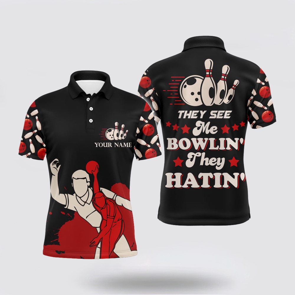 Bowling Polo Shirt, Funny Bowling Shirt Personalized Name They See Me Bowlin They Hatin Bowler Polo Jersey Polo shirts are the embodiment of casual sophistication. They are crafted with a blend of comfort and style, offering a versatile wardrobe essential. The classic collar and button-up design effortlessly bridge the gap between relaxed and polished. Made from premium fabrics, they provide a comfortable fit while maintaining a refined look. Whether for a smart-casual office day or a weekend outing, polo shirts deliver an effortless ensemble that exudes confidence and timeless charm, making them a must-have for any fashion-forward individual.