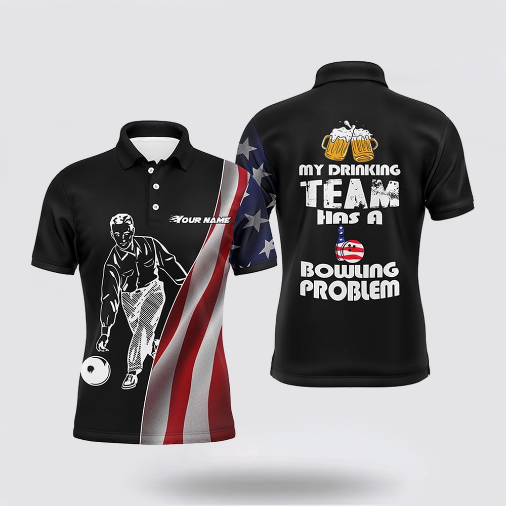 Bowling Polo Shirt, Funny Men Bowling Polo Shirt, Personalized Team Bowlers Jersey American Flag Beer Lover Polo shirts are the embodiment of casual sophistication. They are crafted with a blend of comfort and style, offering a versatile wardrobe essential. The classic collar and button-up design effortlessly bridge the gap between relaxed and polished. Made from premium fabrics, they provide a comfortable fit while maintaining a refined look. Whether for a smart-casual office day or a weekend outing, polo shirts deliver an effortless ensemble that exudes confidence and timeless charm, making them a must-have for any fashion-forward individual.