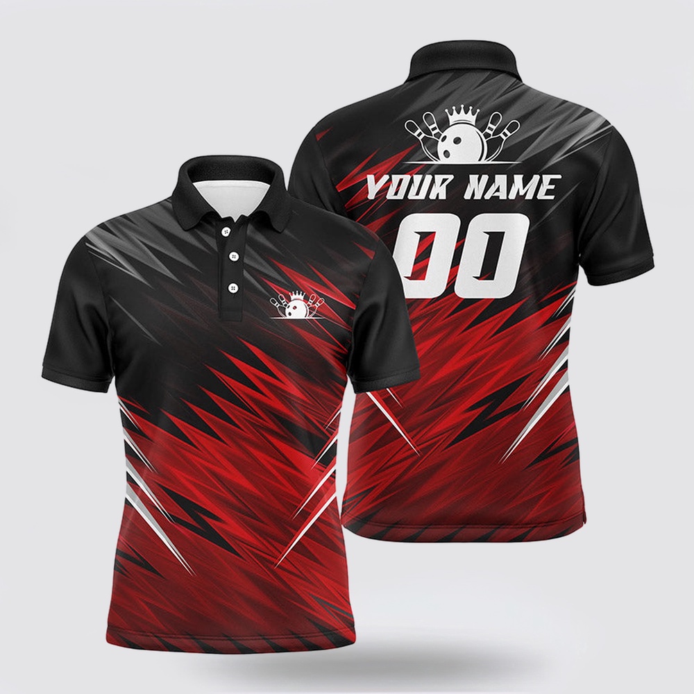 Bowling Polo Shirt, Red And Black Men Short Sleeve Polo Shirts Custom Bowling Shirts Team Bowling Jerseys Bowlers Polo shirts are the embodiment of casual sophistication. They are crafted with a blend of comfort and style, offering a versatile wardrobe essential. The classic collar and button-up design effortlessly bridge the gap between relaxed and polished. Made from premium fabrics, they provide a comfortable fit while maintaining a refined look. Whether for a smart-casual office day or a weekend outing, polo shirts deliver an effortless ensemble that exudes confidence and timeless charm, making them a must-have for any fashion-forward individual.