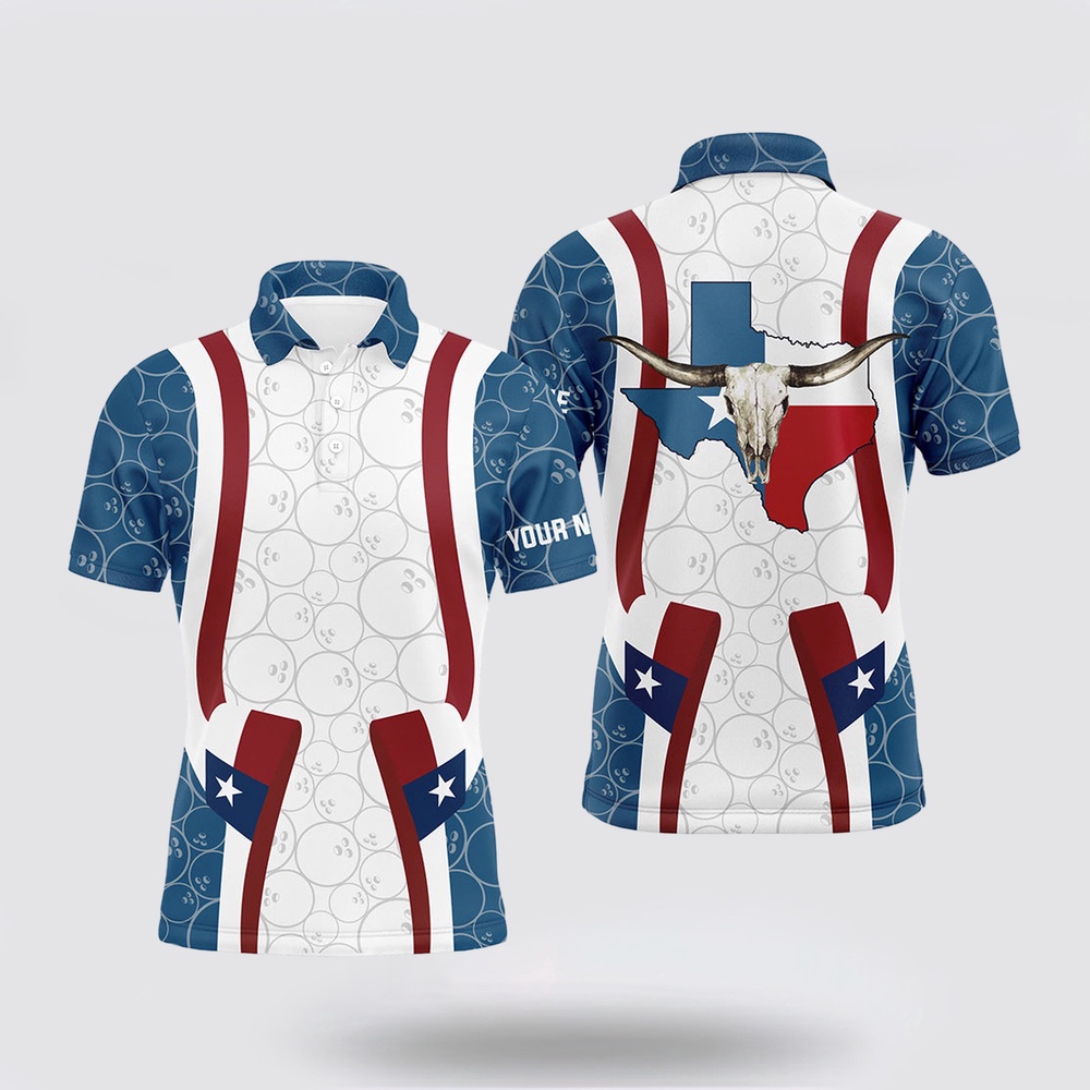 Bowling Polo Shirt, Texas Flag Longhorn Bowling Shirts Bowling Team League Jersey Custom Bowling Polo Shirts Polo shirts are the embodiment of casual sophistication. They are crafted with a blend of comfort and style, offering a versatile wardrobe essential. The classic collar and button-up design effortlessly bridge the gap between relaxed and polished. Made from premium fabrics, they provide a comfortable fit while maintaining a refined look. Whether for a smart-casual office day or a weekend outing, polo shirts deliver an effortless ensemble that exudes confidence and timeless charm, making them a must-have for any fashion-forward individual.
