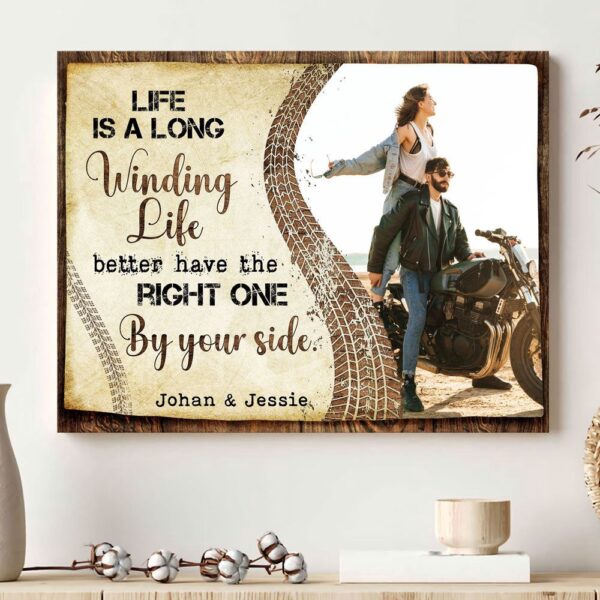 Canvas Prints Valentine’s Day, Personalized Biker Couple Life Is A Long Ride Canvas, Couple Lovers Wall Art