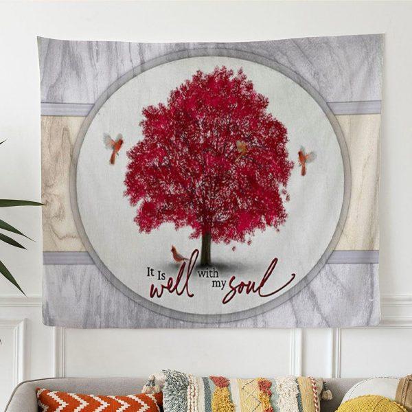 Cardinal Birds It Is Well With My Soul Tapestry Wall Art For Christmas – Tapestries Gift For Christian – Excoolent A tapestry is more than just a piece of fabric; it’s a statement of art and personality. Crafted with intricate detail, it transforms any space into a visual masterpiece. The high-quality material provides a sturdy foundation for vibrant, long-lasting prints. Whether it’s a mesmerizing nature scene, a cultural tribute, or an abstract masterpiece, the options are limitless. The tapestry’s versatile size makes it a dynamic décor element, suitable for walls, beds, or even as a statement piece for special occasions. Elevate your living space with a tapestry, turning your surroundings into a canvas of creativity and self-expression.