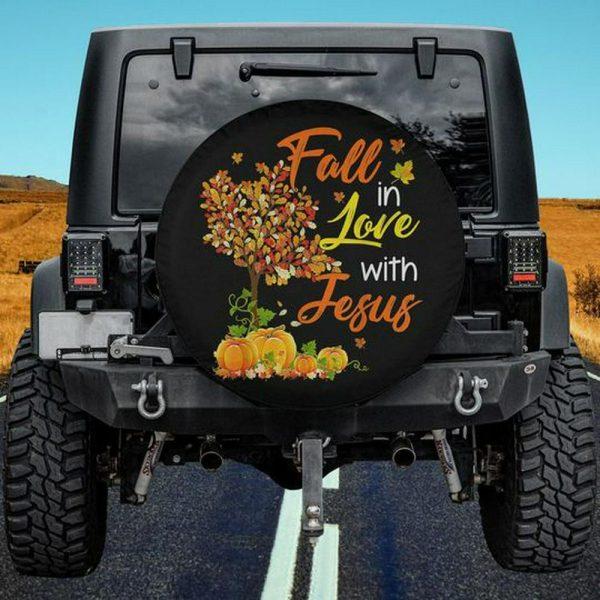 Christian Tire Cover, Jesus Autumn Fall In Love With Jesus Thanksgiving Spare Tire Cover, Jesus Tire Cover, Spare Tire Cover – Excoolent The Spare Tire Cover is a practical and stylish accessory for any vehicle. Made from durable materials, it provides essential protection for your spare tire from the elements, including sun, rain, and dust. Its snug fit and elasticized edges ensure a secure grip, even during high-speed drives. Available in various sizes and designs, it adds a personal touch to your vehicle, reflecting your style and interests. Whether you’re off-roading, on a road trip, or simply want to upgrade your vehicle’s look, the Spare Tire Cover is a versatile and functional choice. Embrace both practicality and aesthetics with this essential automotive accessory.