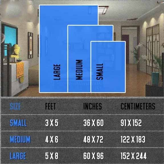 – Size options: Available in two sizes – Small (91 x 152cm / 36 x 60in), Medium (122 x 183cm / 48 x 72in), Large (152 x 244cm / 60 x 96in), suitable for any space, whether it’s a smaller bedroom or the main living room.