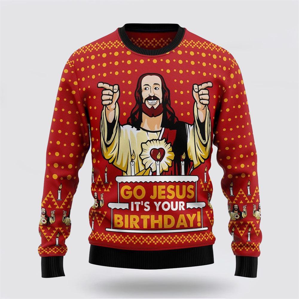 Jessus Birthday Ugly Christmas Sweater – Gifts For Christians – Excoolent The Sweater is the epitome of classic comfort and style. Crafted from premium materials, it offers warmth and softness, making it a must-have for chilly days. With its versatile design, it effortlessly complements various outfits, whether layered over a shirt or paired with jeans. The timeless appeal of a sweater transcends trends, ensuring it remains a wardrobe staple season after season. Elevate your coziness and fashion game with this essential piece that exudes both elegance and comfort.