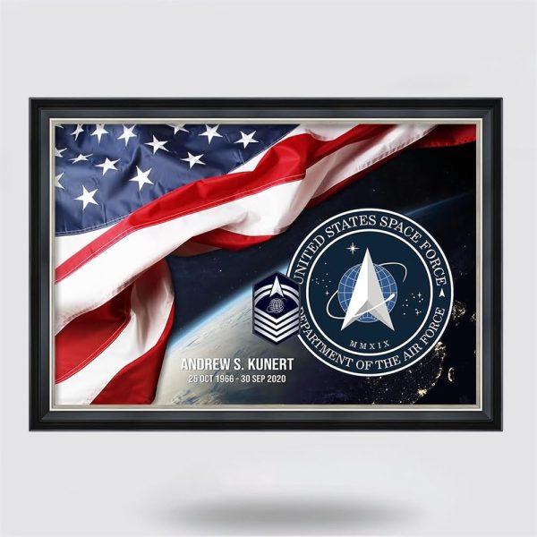Personalized US Air Force Rustic American Flag Prints MMXIX. US Space Force Framed Canvas Wall Art – Gift For Military Personnel – Excoolent Canvas Wall Art is more than a decoration; it’s a statement of creativity and style. Crafted with precision, it transforms any space into a visual masterpiece. The high-quality canvas material provides a sturdy foundation for vibrant, long-lasting prints. Whether it’s a captivating landscape, an abstract masterpiece, or a personalized family portrait, the options are limitless. The stretched canvas gives a modern, gallery-like finish, ready to grace your walls with elegance. Elevate your home decor with Canvas Wall Art, turning your living space into a captivating showcase of your unique taste and personality.