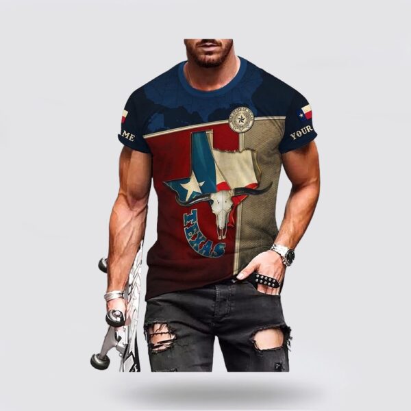 Texas T Shirt, Personalized Skull Cow Texas Flag All Over Print T-Shirt, Texas Longhorns T Shirt – Excoolent Elevate your style with our captivating 3D T-shirts. Crafted with meticulous care, these shirts feature intricate graphics that seemingly leap off the fabric, creating a mesmerizing visual effect. Made with high-quality materials, they offer both comfort and an unparalleled statement-making look. Redefine fashion in a whole new dimension with our innovative 3D T-shirts.