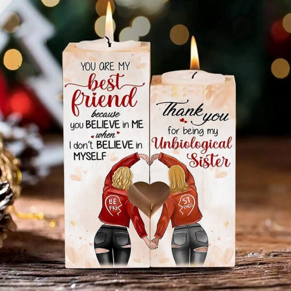 To My Bestfriend, You Are My Bestfriend Beacuse You Believe In Me When I Don’T Believe In Myself Heart Candle Holders, Mothers Day Candle – Excoolent Adorn your space with elegance using our Candle Holder Set, a captivating blend of style and romance. Crafted with exquisite detail, this set features delicately molded heart-shaped holders, each designed to cradle a flickering candle. The stunning design casts a warm, gentle glow, perfect for intimate dinners or relaxing evenings. Crafted from durable materials, these holders promise longevity and charm. Their versatility allows them to complement various themes, making them an ideal decorative addition to any room. Whether as a centerpiece or enhancing an ambiance, this candle holder set embodies sophistication, adding a touch of love and warmth to your home decor.