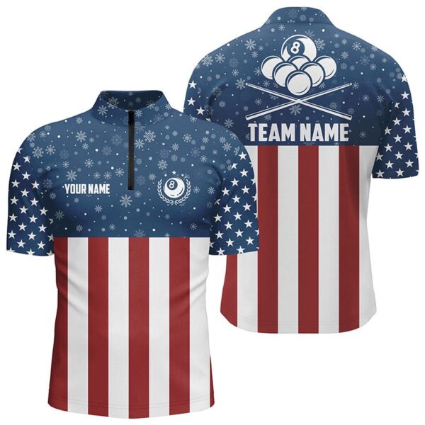 Us Flag Christmas Snowflakes Pattern Custom Patriotic Christmas Shirts, Personalized Billiard Team Jersey Shirt – Excoolent Sports jerseys are the epitome of personalized style in athletics. They are crafted to deliver both performance and flair, seamlessly blending comfort with a distinct appearance. Constructed from premium fabrics, they offer unrestricted movement and breathability during every game. With their unique designs, often showcasing bold patterns and customizable options, sports jerseys add a touch of individuality to your sporting attire. Whether you’re a casual player or a seasoned pro, a sports jersey is a statement piece that reflects your love for the sport. Stand out on the field or court and embrace both comfort and personal style with this essential athletic apparel.