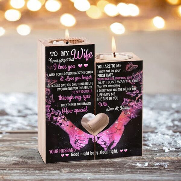 Valentine Candle Holder, To My Wife Couple Candle Holder Never Forget that I love you Candlesticks Confession Gift – Excoolent Adorn your space with elegance using our Candle Holder Set, a captivating blend of style and romance. Crafted with exquisite detail, this set features delicately molded heart-shaped holders, each designed to cradle a flickering candle. The stunning design casts a warm, gentle glow, perfect for intimate dinners or relaxing evenings. Crafted from durable materials, these holders promise longevity and charm. Their versatility allows them to complement various themes, making them an ideal decorative addition to any room. Whether as a centerpiece or enhancing an ambiance, this candle holder set embodies sophistication, adding a touch of love and warmth to your home decor.