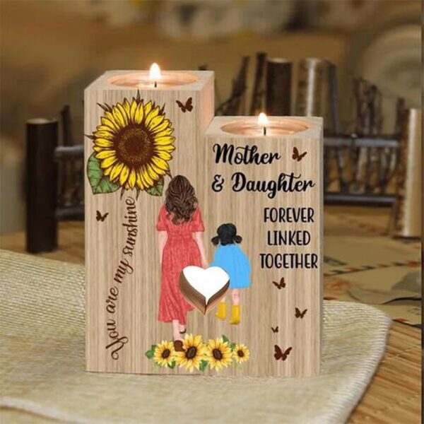 Valentine Candle Holder, Wooden Candle Holder Mother and Daughter Forever Linked Together – Excoolent Adorn your space with elegance using our Candle Holder Set, a captivating blend of style and romance. Crafted with exquisite detail, this set features delicately molded heart-shaped holders, each designed to cradle a flickering candle. The stunning design casts a warm, gentle glow, perfect for intimate dinners or relaxing evenings. Crafted from durable materials, these holders promise longevity and charm. Their versatility allows them to complement various themes, making them an ideal decorative addition to any room. Whether as a centerpiece or enhancing an ambiance, this candle holder set embodies sophistication, adding a touch of love and warmth to your home decor.